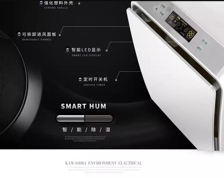 川岛除湿机家用防潮抽湿卧室地下室吸湿器干燥工业大功率 DH-858A