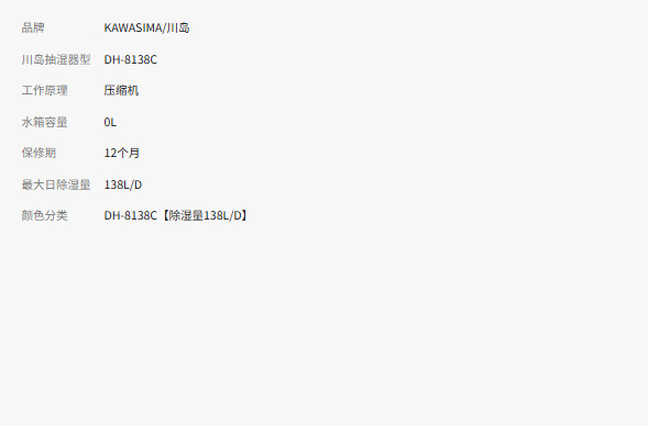 川岛除湿机DH-8138C地下室工业抽湿器别墅大功率车间仓库干燥机