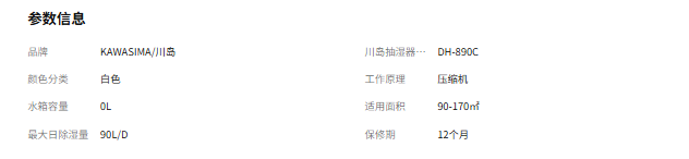 川岛除湿机DH890C大型工业除湿机商用车间仓库地下室大功率抽湿机