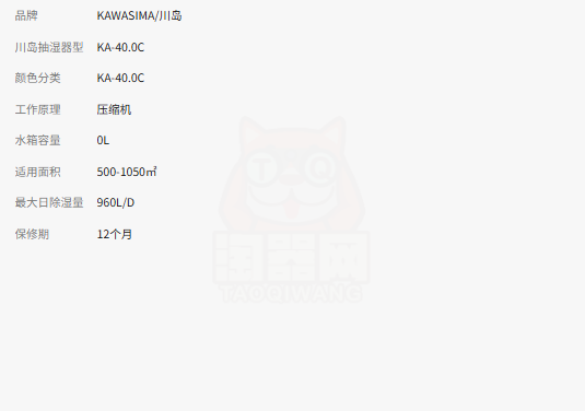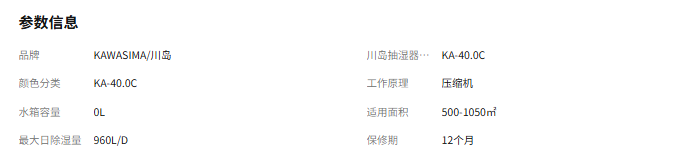 KAWASIMA川岛KA-40.0C商用工业除湿机地下室车间抽湿机仓库除湿器