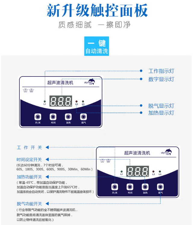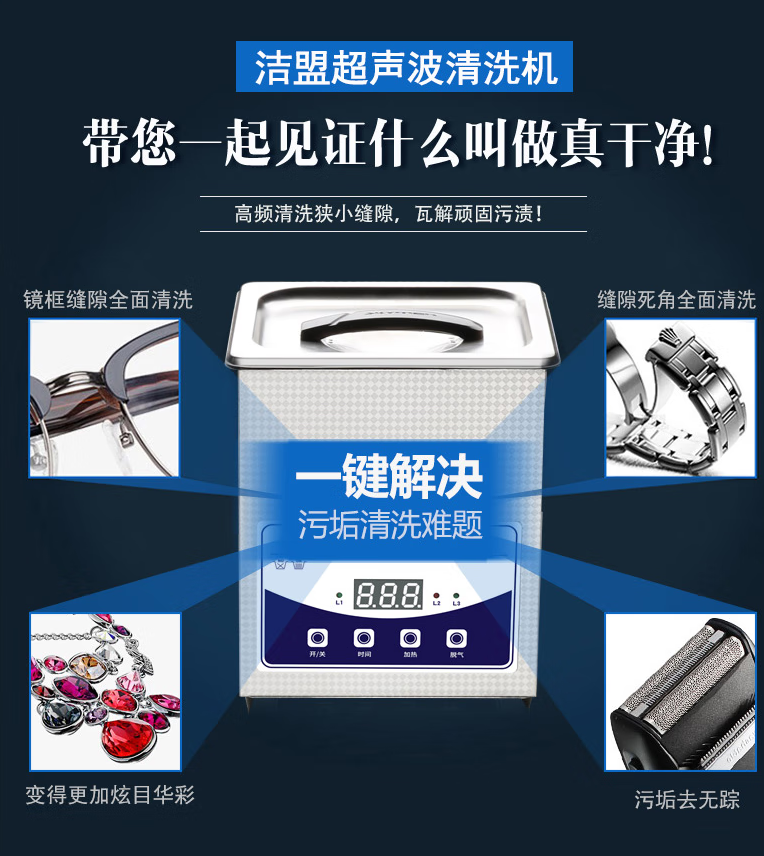 洁盟(skymen)超声波清洗机眼镜 家用清洗机工业实验室手机主板清洗器JP-010T