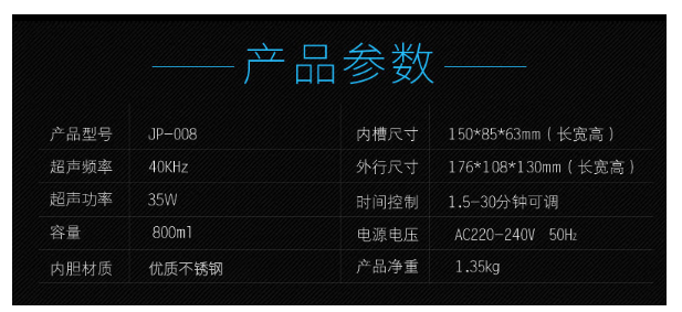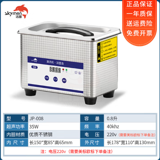 洁盟(skymen)超声波清洗机 家用眼镜手表首饰喷头主板五金小型清洗器 JP-008