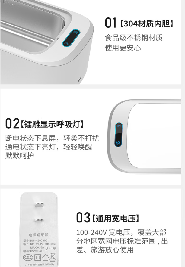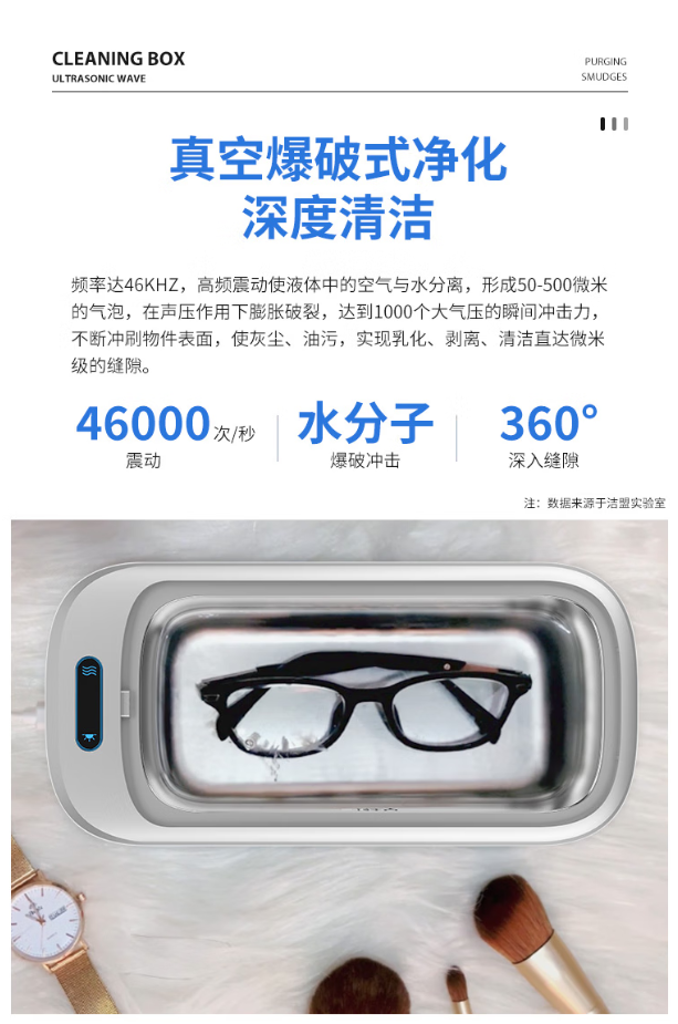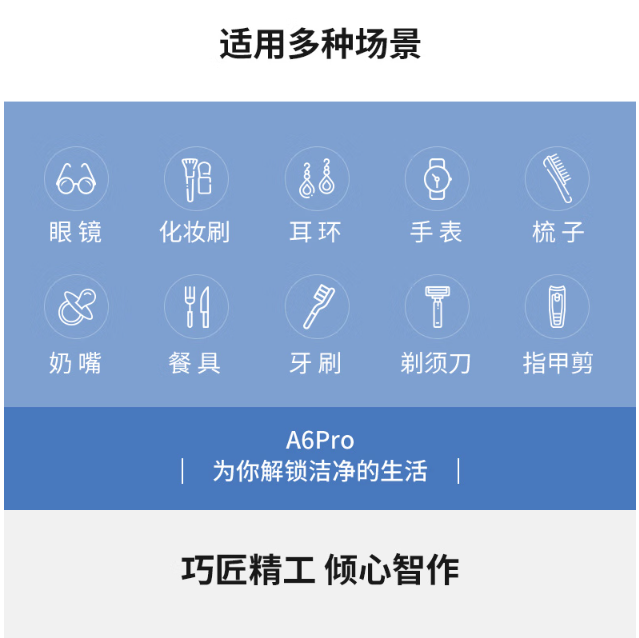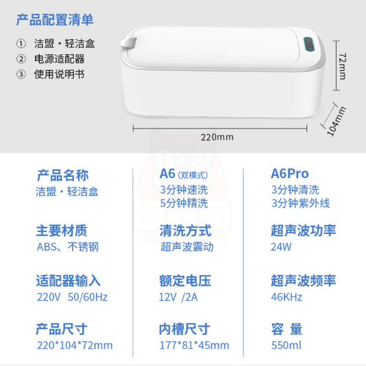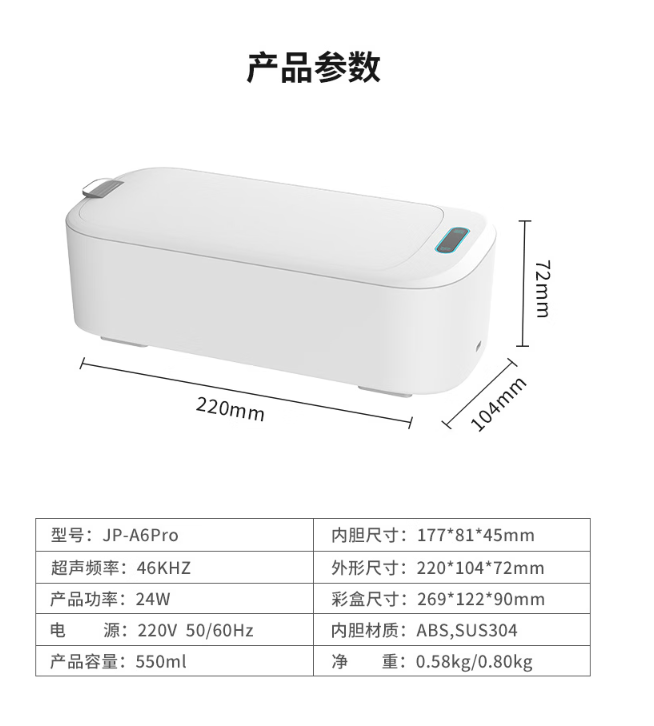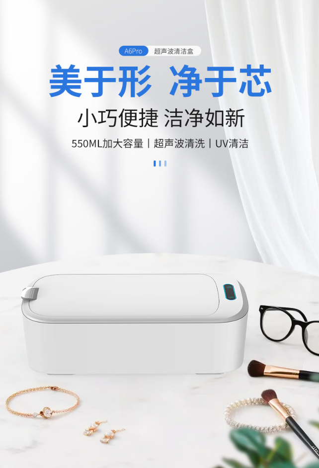 洁盟超声波清洗机 家用眼镜首饰清洗 UV杀菌清洗仪 A6PRO白色
