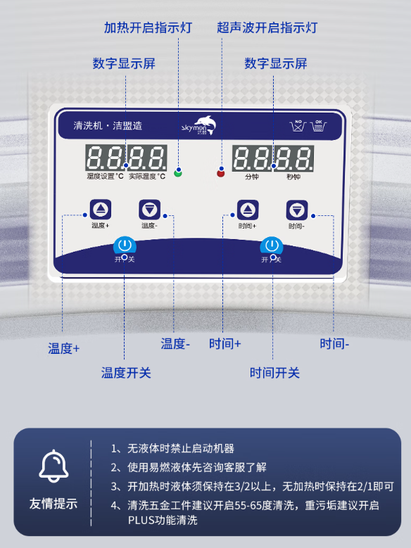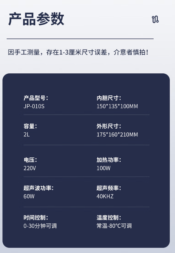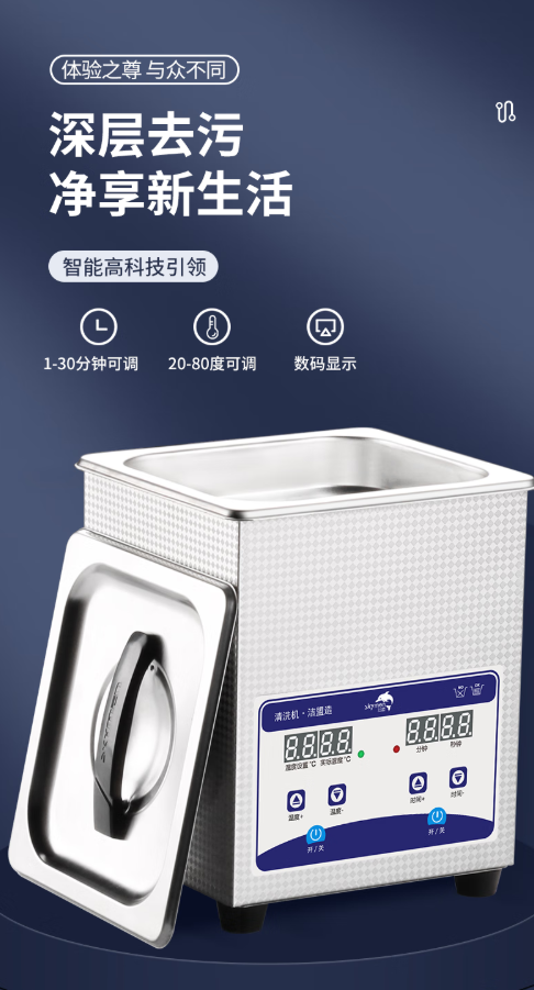 洁盟(skymen)超声波清洗机 工业实验室家用小型清洗器2L JP-010S