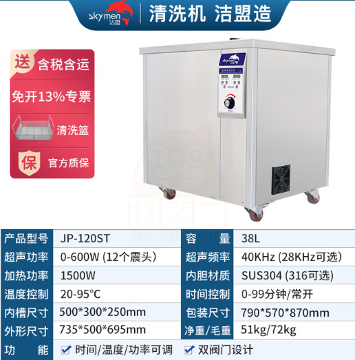 洁盟(skymen)超声波清洗机工业 五金模具零件发动机大功率清洗器大容量清洗机 JP-120ST+600W