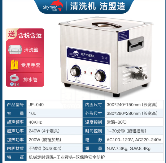 洁盟(skymen)工业超声波清洗机 实验室五金线路板大型清洗机除油除锈清洗仪器 JP-040 机械款