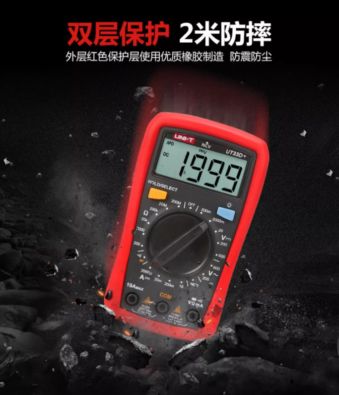 优利德万用表数字高精度全自动数显测电容多功能防烧电工万能表UT33B+