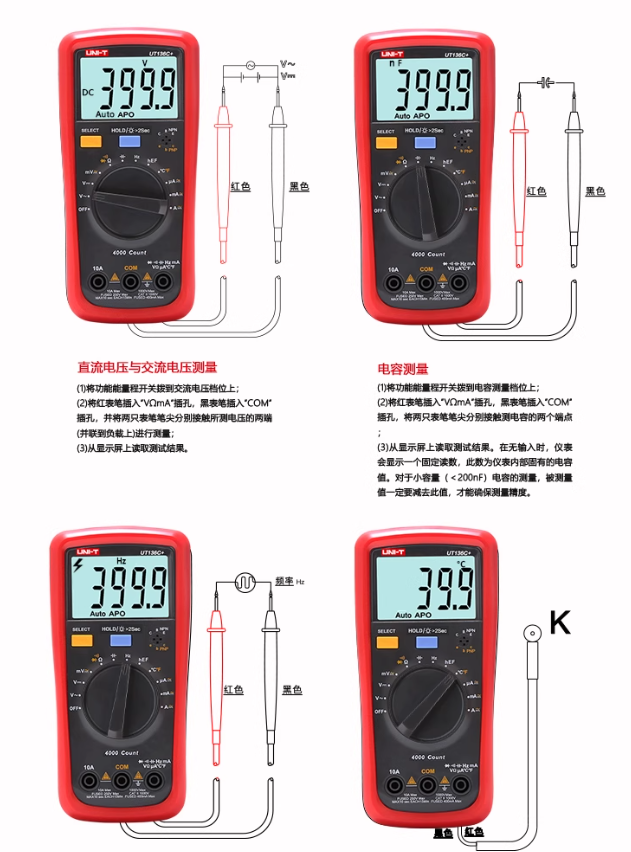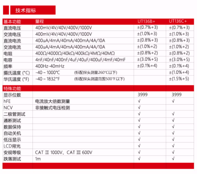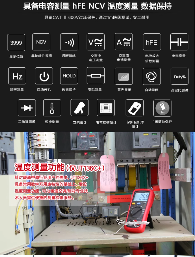 优利德UT136C+数字万用表多功能防烧高精度测电容家用电工万能表