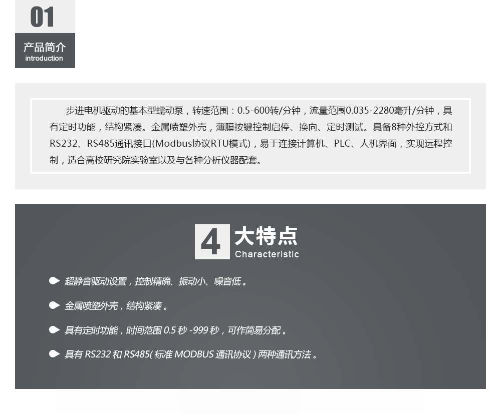 产品特点 薄膜按键控制启停、换向、定时测试、外控选择,再配合数码旋钮实现调速或全速排空,操作简单方便。