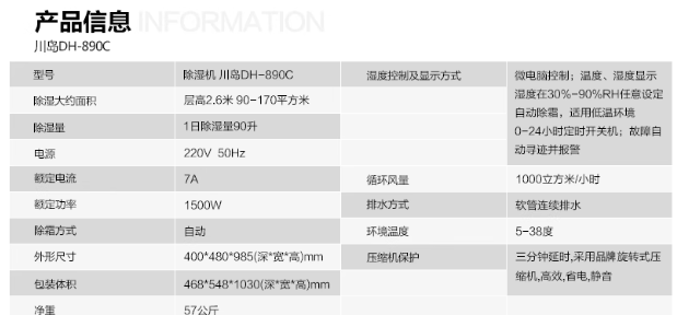 川岛除湿机DH890C大型工业除湿机商用车间仓库地下室大功率抽湿机