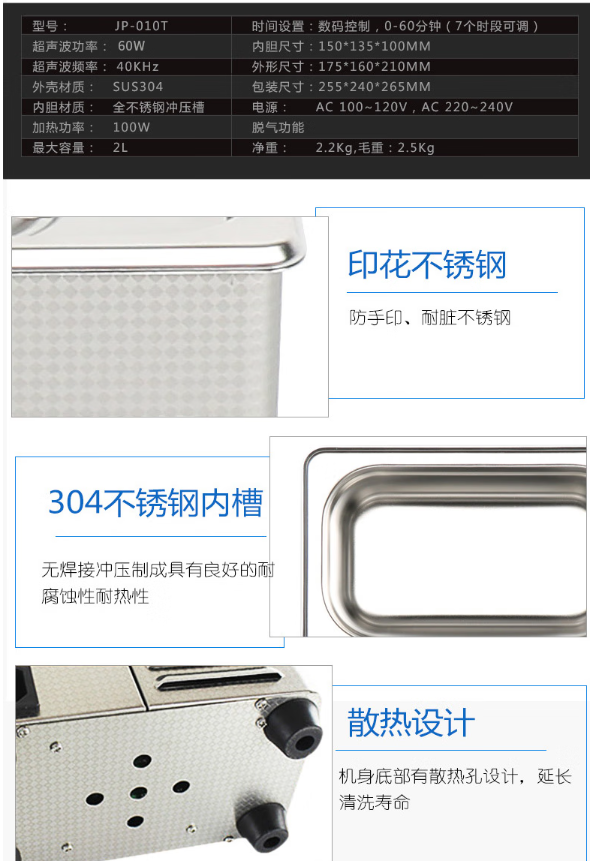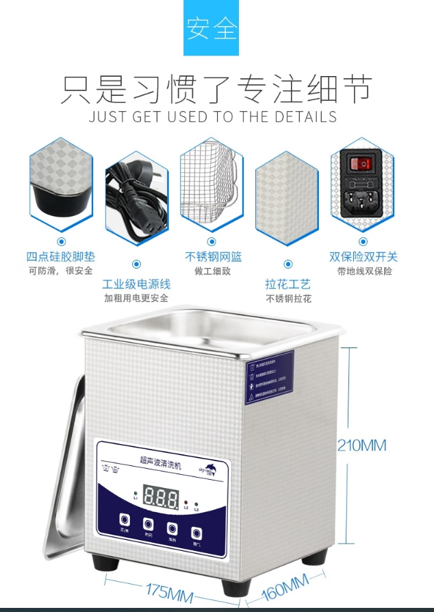 洁盟(skymen)超声波清洗机 工业实验室家用小型清洗器2L JP-010S