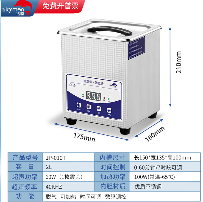 洁盟(skymen)超声波清洗机眼镜 家用清洗机工业实验室手机主板清洗器JP-010T
