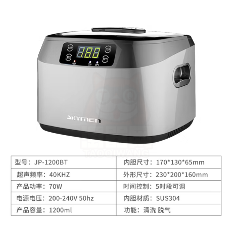 洁盟(skymen)超声波清洗机 家用眼镜清洗机 首饰手表假牙大功率清洗器 JP-1200BT(1.2L/70W)加强版