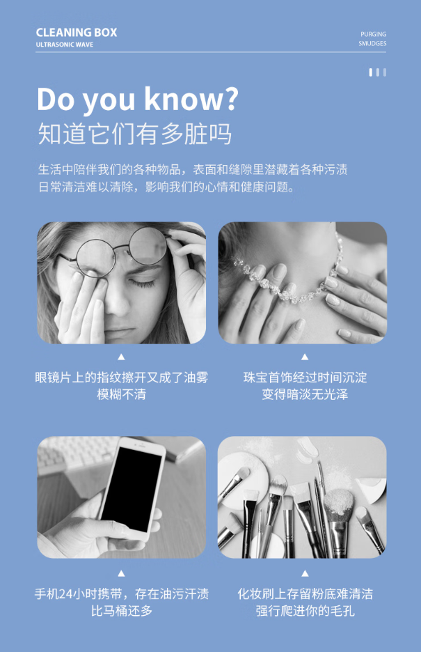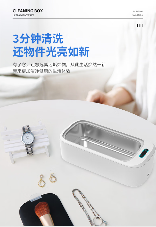 洁盟超声波清洗机 家用眼镜首饰清洗 UV杀菌清洗仪 A6PRO白色
