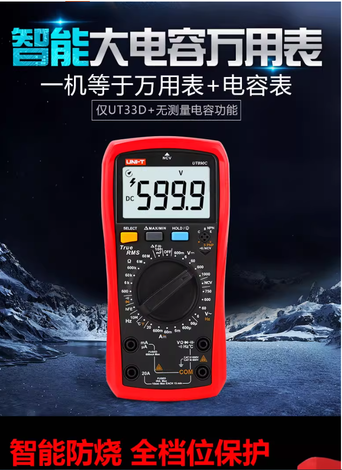 优利德万用表数字高精度全自动数显测电容多功能防烧电工万能表UT33B+