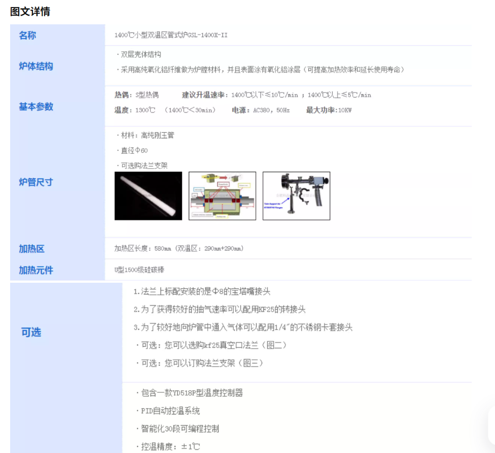 合肥科晶 马弗炉 GSL-1400X-II 实验室双温区高温管式炉1400℃