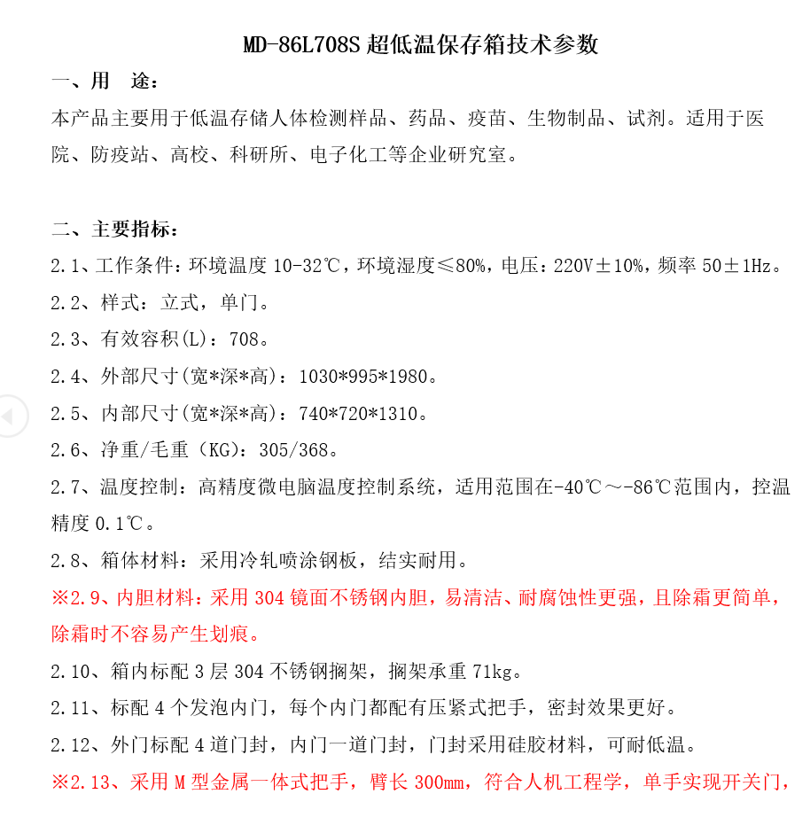 美的MD-86L708S超低温冰箱/医用冷冻冰箱/美的冰箱/医用冰箱/
